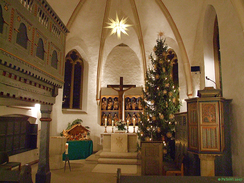 Mit einem Bild von der weihnachtlich geschmückten Kirche in Holtrup gibt es hier die Predigten vom Jahreswechsel: