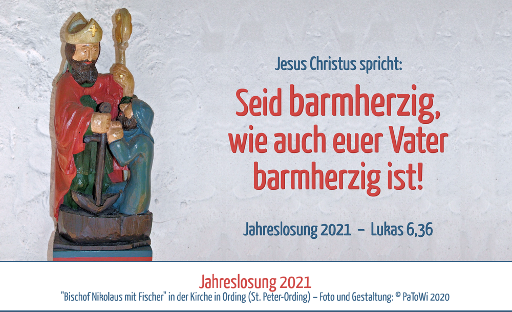 Ich sehe es als ein besonderes Zeichen für dieses Jahr, dass es als Jahreslosung mit der Zusage und dem Aufruf der Barmherzigkeit überschrieben ist. Ja, die Zusage der Barmherzigkeit geht dem Aufruf voraus, obwohl sie erst im zweiten Teil des Satzes steht: Jesus fordert seine Zuhörer auf, barmherzig zu sein, eben weil sie diese Barmherzigkeit von ihrem himmlischen Vater schon erfahren haben.