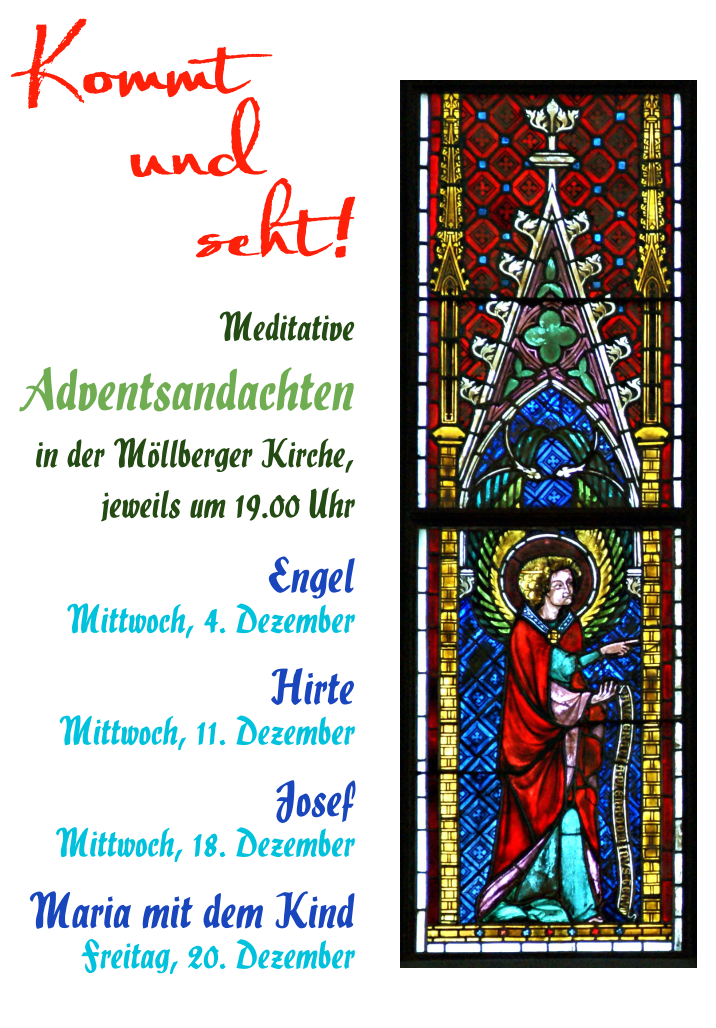 Unter der Überschrift „Kommt und seht!“ gibt es auch in diesem Jahr 4 Advents-Andachten in der Möllberger Kirche jeweils um 19.00 Uhr: